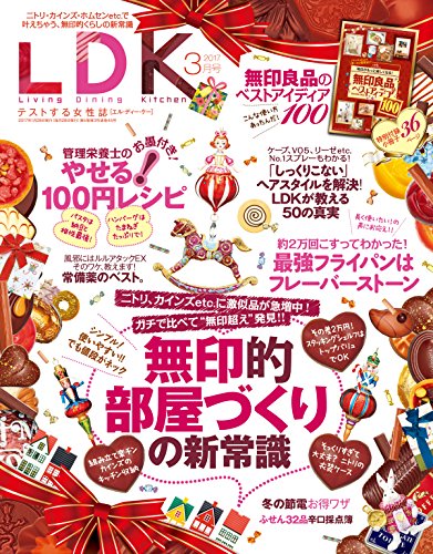 『LDK3月号』は、無印超えを探しました!「無印的部屋づくりの新常識」!! ほか、「フライパン THE TEST」、「やせる! 100円レシピ」「ヘアスタイルの真実50」「本当にいい常備薬見つけました」「冬の節電 お得技」「実用ふせん32製品辛口採点簿」など、盛りだくさんです!