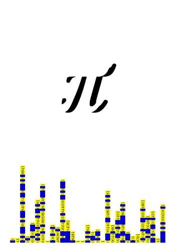 円周率(π)のゼロとゼロの距離を表したグラフ(各ゲージの頂上がゼロになっています。)、