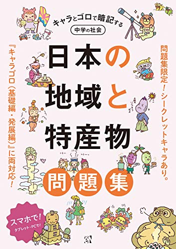『キャラとゴロで暗記する中学の社会 日本の地域と特産物』の基礎編・発展編の暗記がおわった人は手をあげて!つぎはこの問題集で復習しましょう。