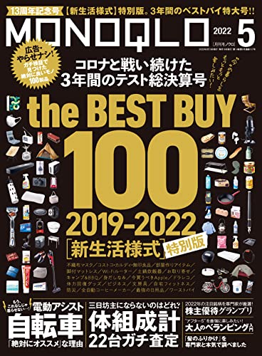 MONOQLO5月号はザ・ベストバイ100「殿堂入りベスト/電動アシスト自転車/ベランピング/体組成計」