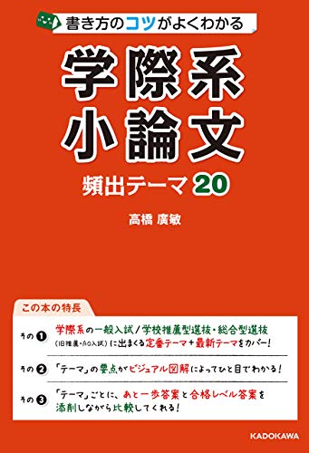 大好評を博している学部・系統別小論文対策シリーズの新アイテム。今回の対象は、文系・理系の垣根を越えて学べると近年大人気の学際系学部・系統の対策。この分野は文理の区別がないため、出題が多岐にわたります。そんな、つかみどころのない学際系小論文の勉強に、「何を書くべきか」「どう書くべきか」をハッキリ示してくれるのがこの本。全20の「テーマ」で文系・理系両方の頻出トピックをカバー。現在世の中を揺るがせている「新型コロナウイルス感染症」のトピックも1「テーマ」分掲載。定番出題傾向と最新出題傾向の両方をおさえているので、水も漏らさぬ万全の対策が立てられます。学際系受験者全員必携の奥義書です。