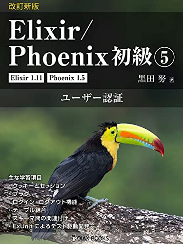 本巻『改訂新版 Elixir/Phoenix 初級⑤: ユーザー認証』は、新シリーズのために新たに書かれたものです。すなわち、この巻に対応する旧版はありません。