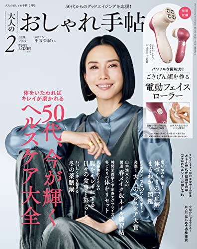 大特集は「50代、今が輝くヘルスケア大全」。体づくりの正解をわかりやすく解説することからはじめ、50代をサポートするヘルスケア大賞、山本浩未さんの春メイク、下半身ダイエットまで、体をいたわりキレイを磨くことから新年をスタートさせましょう。ほかに、「最短距離の美肌道」「真藤舞衣子さんの日々の暮らし」「植松美智子さんのヘルシーおしゃれ」「はじめての株投資」「2023年、3つの目標リスト」と充実の内容です。
