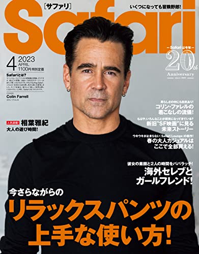 表紙:コリン・ファレル/特集:今さらながらのリラックスパンツの上手な使い方!/海外セレブとガールフレンド!彼女の素顔と2人の時間をパパラッチ!/春の大人カジュアルはここで全部買える!ウキウキが止まらないSafari Loungeの新作!/新旧SF映画に見る未来ストーリー/コリン・ファレルの着こなしの流儀!/人気連載!相葉雅紀 大人の遊び時間/ほか