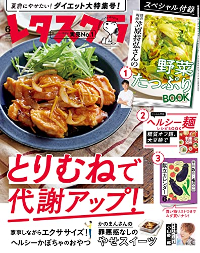 永遠のテーマともいえる「ダイエット」。薄着の季節が近づくと、より気になってくる…ということで、今号はダイエットスペシャル号。読者の皆さんのお声から、やせない4大原因を考え、それらをつぶしていく企画を詰め込みました! 料理特集では、代謝をアップさせる「とりむね肉」レシピや、ダイエットにピッタリなかぼちゃのおやつ、かのまんさんのダイエットスイーツなど。その他、エクササイズや睡眠の見直しなど、料理以外でもダイエットを助ける企画が盛りだくさん。大好評の別冊付録は、賛否両論 笠原将弘さんの「野菜たっぷりBOOK」。献立の悩みから解放される!と話題の「献立カレンダー」もついていて、読み応えたっぷり!オトナのNEWS連載は小山慶一郎さんがご登場します。コミックエッセイも多数!レタスクラブ6月号をぜひお楽しみください。